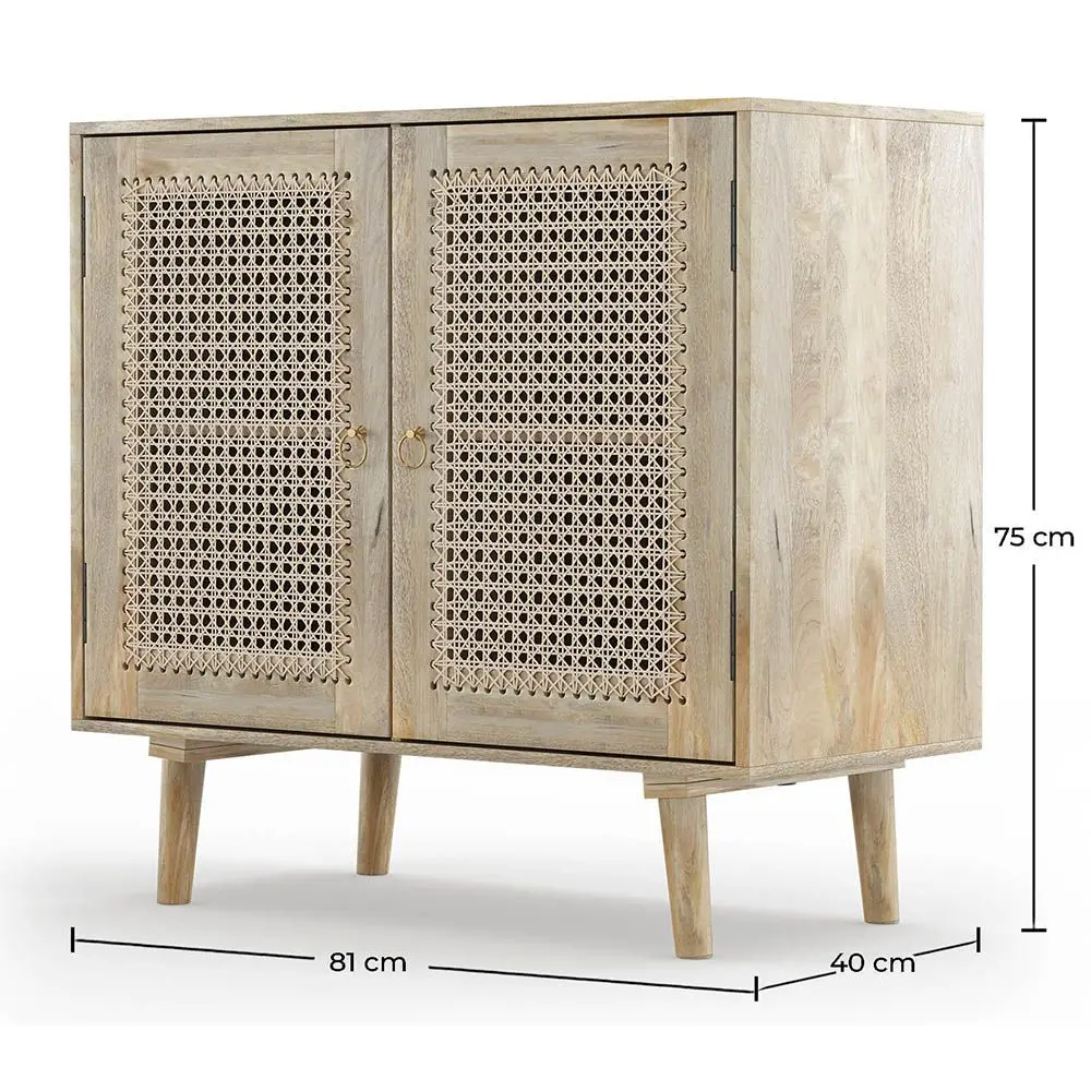 Orta to szafka idealna do mniejszych przestrzeni. Z ramą z drewna mango i drzwiami o splocie trzcinowym. Ten drewniany kredens pomoże zorganizować i zrelaksować się w biurze, salonie, przedpokoju.