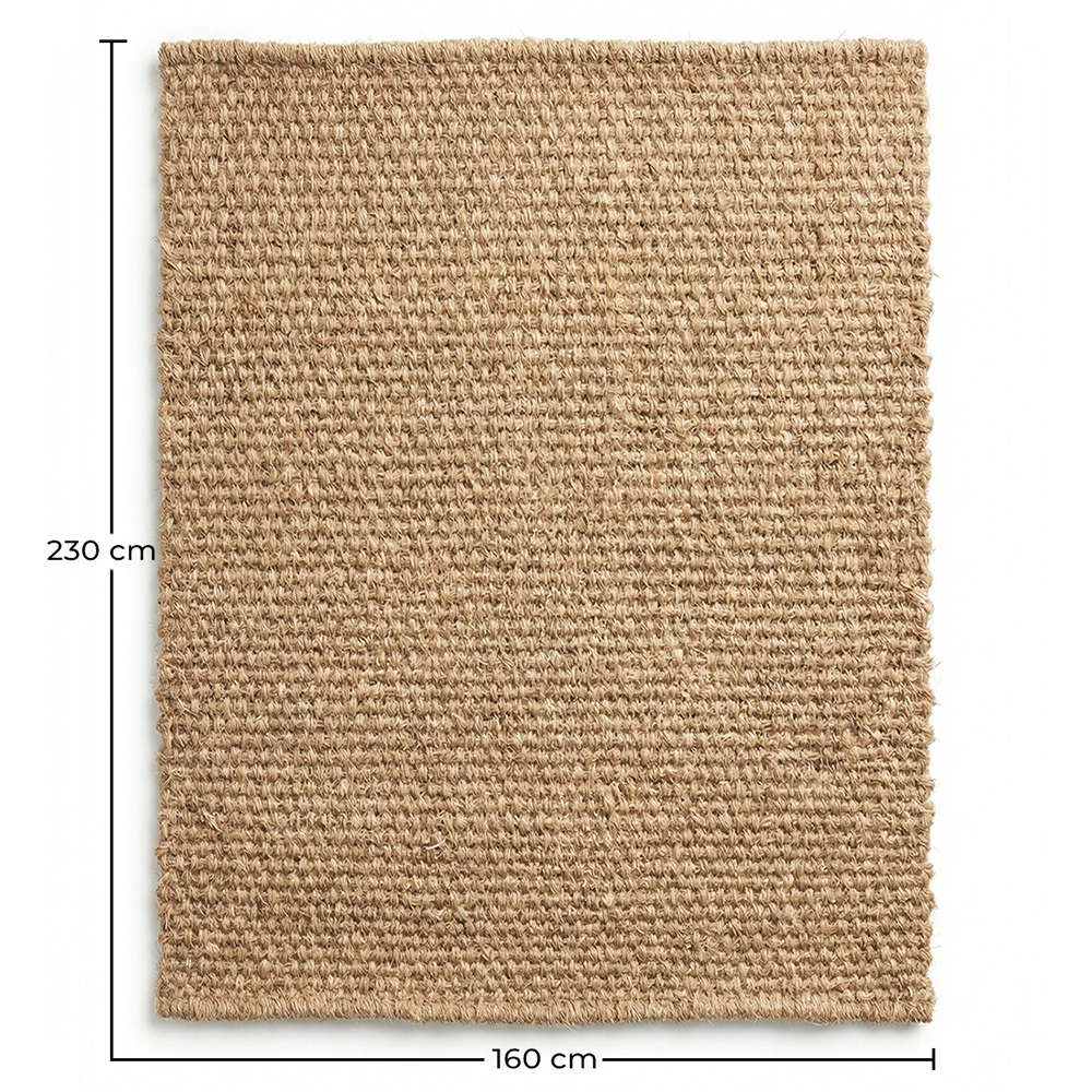 Dzięki rozmiarowi 230x160cm jest idealny jako dywan do salonu, dywan na zadaszony taras, dywan na ganek, dywan do przedpokoju, a nawet jako dekoracyjny dywan do jadalnia. Jego naturalne wykończenie w tonacji łatwo komponuje się ze stylami nordyckim, rustykalnym, śródziemnomorskim lub boho.