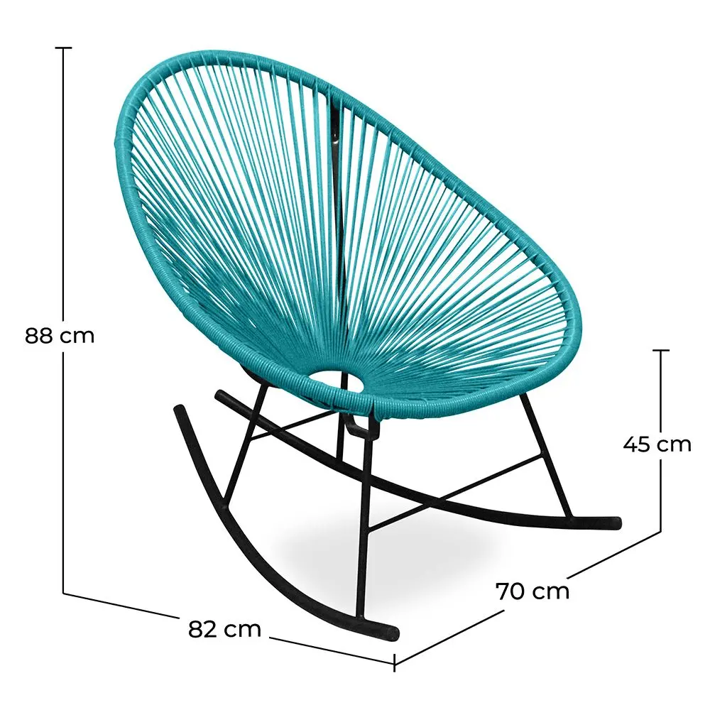 Legendarne krzesło Acapulco zostało odnowione, aby przedstawić jego bujaną wersję. To krzesło, które służy zarówno do użytku wewnętrznego, jak i zewnętrznego, jest wykonane ze stalowej konstrukcji w kolorze czarnym i siedziska z syntetycznej liny.