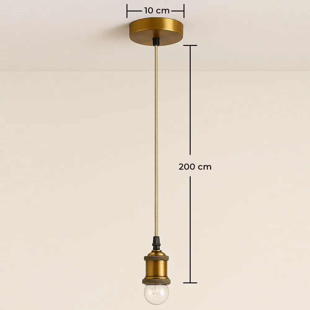 Dodaj odrobinę vintage elegancji do swoich przestrzeni dzięki temu kablowi do lampy wiszącej w kolorze postarzanego złota. Jego wyrafinowany i ponadczasowy design idealnie komponuje się z dekoracyjnymi żarówkami lub kloszami w stylu retro i industrialnym. Wykonany z metalu z wykończeniem szczotkowanym, posiada oprawkę E27 oraz regulowany na wysokość złoty kabel tekstylny, idealny do różnych potrzeb oświetleniowych i wysokości sufitów.