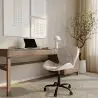 Odkryj doskonałą harmonię między elegancją nordycką a nowoczesną funkcjonalnością dzięki temu krzesłu biurowemu w stylu skandynawskim. Tapicerowane siedzisko z ekoskóry nie tylko jest przyjazne dla środowiska, ale także dodaje szczyptę wyrafinowania do Twojej przestrzeni roboczej. Koła zapewniają sprawność mobilności, regulowana wysokość i ergonomiczne oparcie gwarantują wygodną postawę podczas pracy. Czarna metalowa konstrukcja nóg, charakterystyczna dla projektów skandynawskich, dodaje nowoczesny i minimalistyczny akcent. Doświadcz równowagi między stylem a komfortem dzięki temu krzesłu do biurka, które odzwierciedla esencję skandynawskiego wzornictwa w każdym detalu.