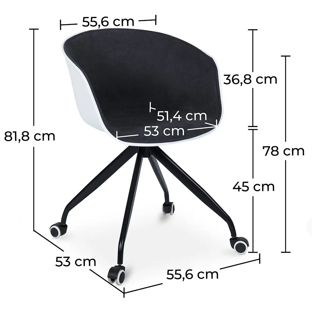 Krzesło biurowe z podłokietnikami - Krzesło do biurka z kółkami - Czarny i biały - Jodie Komfort i styl to dwa słowa, które najlepiej opisują ten wyjątkowo zaprojektowany fotel biurowy. Dla każdego, kto szuka stylowego krzesła do swojej przestrzeni biurowej, ten element, z białym oparciem PP i poduszką z tkaniny, powinien być Twoim ulubionym elementem. Krzesło posiada malowane proszkowo nogi z kółkami, co nadaje mu wyrafinowany, a zarazem stylowy charakter. Jego biały kolor doda tak bardzo potrzebnej energii, która pomoże ci przebrnąć przez cały dzień pracy. Nasza jakość i ceny bez wątpienia idą w parze. Oferowanie komfortu i wartości to nasza mantra i właśnie to zapewnia ten fotel.