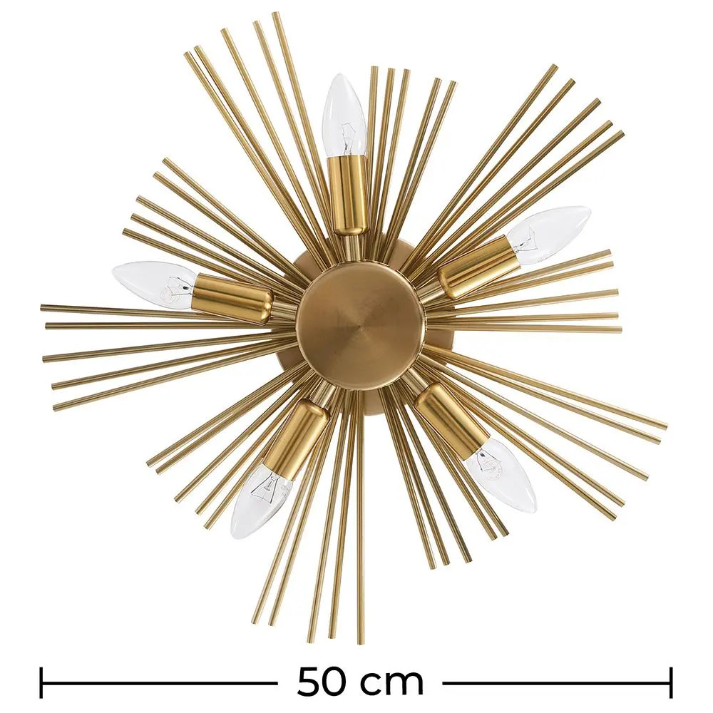Ten piękny kinkiet wniesie luksus i klasę do wystroju wnętrza. Jest to lampa wykonana z metalu i składa się z 5 gniazd, które oświetlą sypialnię, salon, korytarz lub wejście do domu ciepłym i przytulnym światłem.