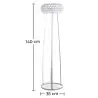 Lampa ma średnicę 35 centymetrów i wysokość 168 centymetrów, dzięki czemu emanuje romantyzmem i elegancją w każdym miejscu.