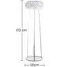 Lampa ma średnicę 50 centymetrów i wysokość 172 centymetrów, dzięki czemu emanuje romantyzmem i elegancją wszędzie tam, gdzie zostanie umieszczona.