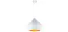 Pobity mosiądz na zewnątrz tworzy czarną powierzchnię, która kontrastuje z ciepłym, złotym wnętrzem. Ten kreatywny projekt zapewnia bezpośrednie światło i będzie artystycznym uzupełnieniem każdej stylowej aranżacji. Ta lampa wisząca jest również dostępna w białej wersji zewnętrznej.