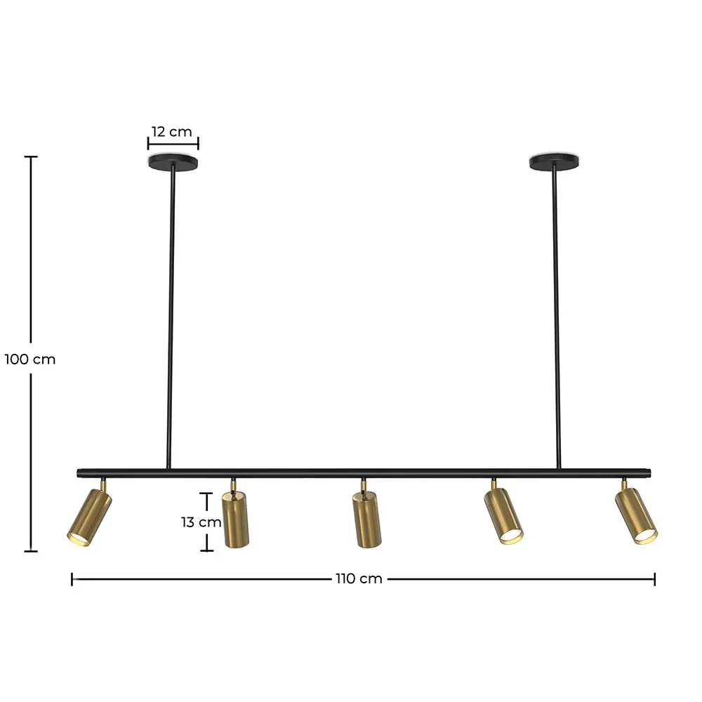Ta nowoczesna lampa wisząca w stylu industrialnym ma 110 centymetrów długości, a regulowane reflektory pozwalają dostosować położenie światła, aby stworzyć idealną atmosferę w pomieszczeniu.
