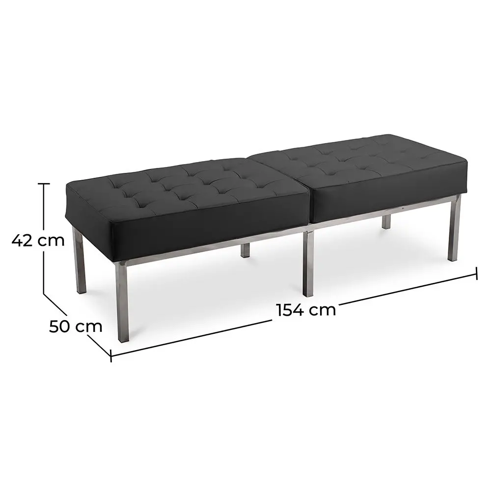 Dzięki swojej elegancji i wyjątkowemu komfortowi, ta 3-osobowa ławka Konel będzie pasować zarówno do Twojego biura, jak i domu. Ławka jest bardzo reprezentacyjna i artystyczna. Jest dostępna w różnych kolorach. Siedzisko osadzone jest na stalowej nodze, która doskonale współgra z kolorem skórzanej tapicerki, nadając jej nowoczesności i elegancji. Ta 2-osobowa ławka jest zarówno szeroka, jak i wygodna, dzięki czemu poczujesz się na niej bardzo zrelaksowany. Ławka jest dostępna w kilku kolorach: czarnym, białym, koniakowym, czerwonym, czekoladowym, kości słoniowej, taupe.