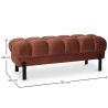 Wprowadź wyróżnienie i komfort do swojego domu dzięki tej ławce w stylu Chesterfield, tapicerowanej miękkim aksamitem z pikowanym wzorem, który odzwierciedla ponadczasową elegancję. Jej solidne żelazne nogi zapewniają stabilność i klasyczny akcent, idealny do uzupełnienia wystroju w salonach, sypialniach lub korytarzach. Wszechstronny element, który łączy tradycję z nowoczesnym akcentem, doskonały dla tych, którzy poszukują dekoracyjnego mebla oferującego zarówno luksus, jak i funkcjonalność.