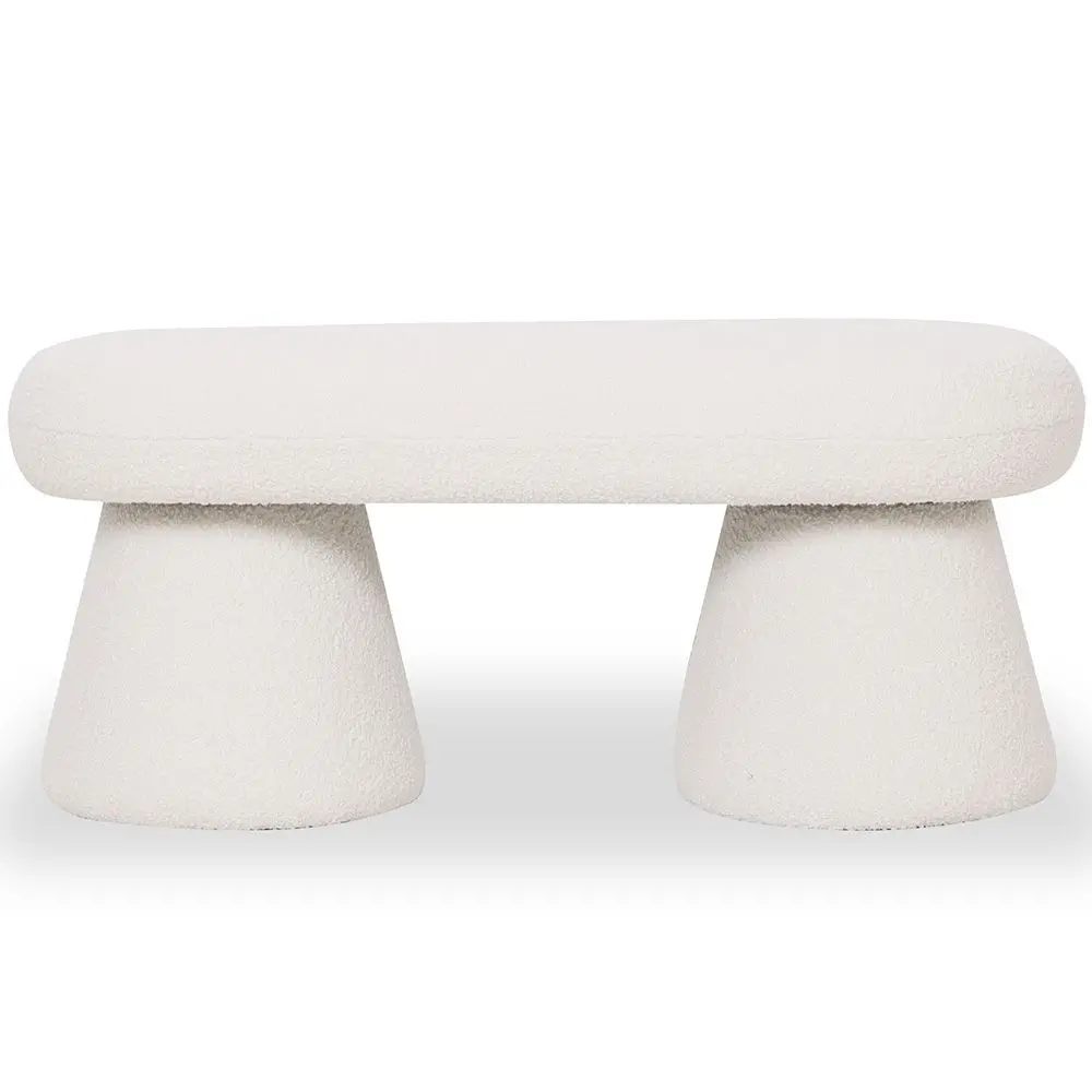 Ta ławka w stylu współczesnym, tapicerowana tkaniną bouclé, wnosi nowoczesną elegancję i komfort do każdego wnętrza. Jej miękka i ciepła faktura, w połączeniu z pianką o wysokiej gęstości, zapewnia wygodę i trwałość. Dzięki minimalistycznemu i zakrzywionemu designowi doskonale nadaje się do dekoracji salonu, sypialni lub przedpokoju, tworząc przytulne wnętrza w stylu skandynawskim i nowoczesnym. Idealna dla osób szukających mebla wszechstronnego, eleganckiego i funkcjonalnego.