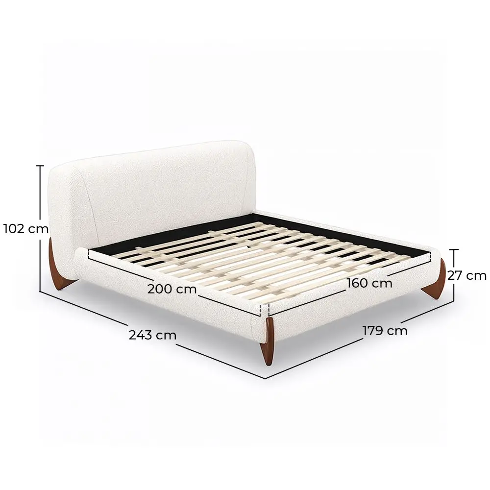 To eleganckie łóżko, odpowiednie dla materacy o wymiarach 160x200 cm, to idealny wybór do przekształcenia Twojej sypialni w nowoczesną i wyrafinowaną przestrzeń. Jego drewniana rama, tapicerowana miękką tkaniną bouclé, oraz ciemnobrązowe nogi dodają elegancji i ciepła. Stelaż, składający się z dwunastu listew z drewna MDF, zapewnia solidne i trwałe wsparcie. Dzięki minimalistycznemu i modnemu designowi, to łóżko nie tylko zapewnia wyjątkowy komfort, ale także dodaje nowoczesnego stylu każdej sypialni, czyniąc ją ostoją dobrego smaku i relaksu.