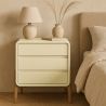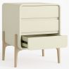 Wprowadź styl i funkcjonalność do swojej sypialni dzięki tej nowoczesnej skandynawskiej szafce nocnej. Wykonana z drewnianej ramy i pokryta wysokiej jakości ekoskórą, oferuje miękkie, współczesne wykończenie, które dopasowuje się do każdego otoczenia: sypialni dla dorosłych, nastolatków lub dzieci. Jej 3 przestronne szuflady ułatwiają utrzymanie porządku, a solidne drewniane nogi w naturalnym kolorze zapewniają stabilność i ciepły, organiczny akcent.
