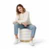 Ciesz się maksymalnym komfortem i stylem dzięki naszemu okrągłemu pufowi tapicerowanemu tkaniną bouclé, która przypomina wełnę owczą. Z drewnianą strukturą i złotą podstawą, ten puf łączy elegancję i nowoczesność w unikalnym designie. Jego miękka i przytulna tapicerka zapewnia luksusowe doświadczenie siedzenia, podczas gdy jego okrągły design oferuje współczesny wygląd. Doskonały do dodania nuty wyrafinowania do każdej przestrzeni, ten puf jest synonimem najwyższej jakości i wyrafinowanego stylu.