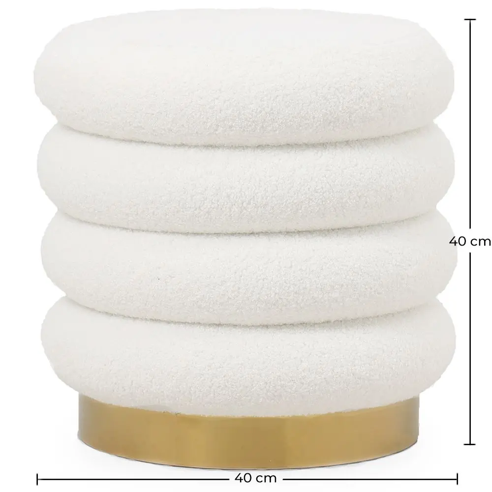 DOM / Taborety / Okrągły Puf Tapicerowany Tkaniną Bouclé - Leonora