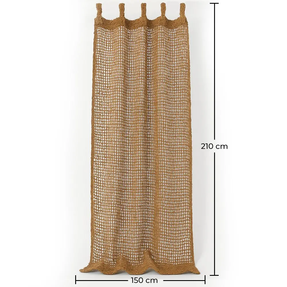 Wprowadź świeży i egzotyczny akcent na swój taras, werandę lub ogród dzięki tej naturalnej zasłonie z włókna kokosowego na zewnątrz. Z rustykalnym, ręcznie wykonanym projektem i ażurową teksturą, która pozwala na przepływ bryzy, ta zasłona jest idealna do tworzenia przytulnych, zacienionych środowisk bez utraty światła. Wykonana w 100% z naturalnego włókna kokosowego, zrównoważonego, mocnego i trwałego materiału, idealnego do użytku na zewnątrz. Mierząc 210 cm wysokości na 150 cm szerokości, oferuje doskonałe pokrycie, niezależnie od tego, czy jest używana jako zasłona do pergoli, dekoracyjna markiza, czy przegroda pomieszczenia. Zawiera zintegrowane pierścienie z tego samego materiału do łatwego montażu na słupkach lub linach. Idealna do stylowej ochrony przed słońcem i nadania boho lub śródziemnomorskiego klimatu każdej przestrzeni na zewnątrz.
