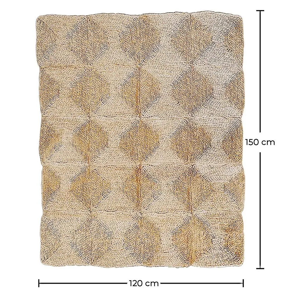 Dalua to imponujący element dekoracyjny, który łączy naturalny urok juty z unikalnym i żywym wzornictwem. Wykonany z wysokiej jakości naturalnych włókien jutowych, prostokątny dywan ten oferuje miękką i trwałą teksturę, dodając ciepło i komfort do każdego wnętrza. Jego rozmiar 120x150 cm doskonale wpasowuje się w różne przestrzenie, od salonów po jadalnie czy sypialnie, a wzór nadaje dywanowi życia i charakteru, sprawiając, że staje się on naprawdę wyjątkowym elementem.