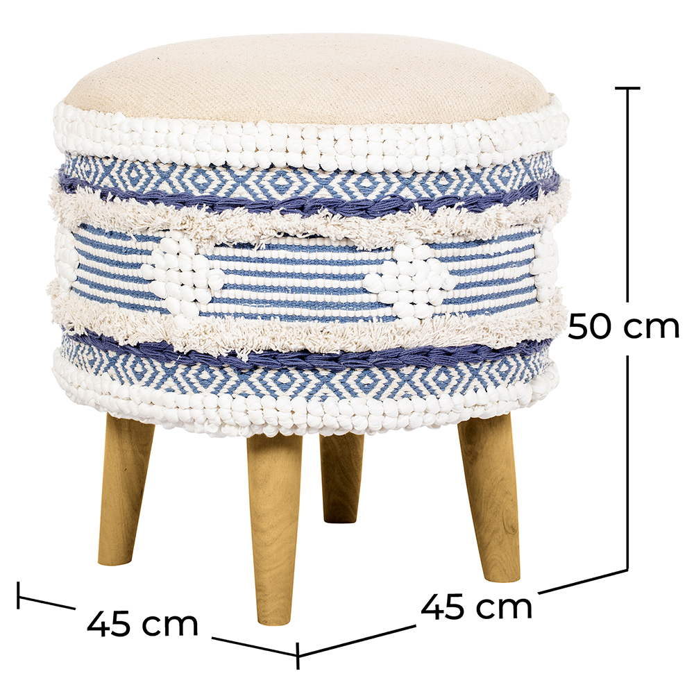 Uwielbiamy Josephine, nasz tapicerowany stołek. Jego rozmiar i waga sprawiają, że jest wygodny w przenoszeniu. Może być używany jako podnóżek lub dodatkowe miejsce do siedzenia. Wygodne siedzisko znajduje się na czterech smukłych drewnianych nogach i jest tapicerowane bawełną i przędzą z recyklingu. Dodaj świeży, boho wygląd do swojej sypialni, salonu, przedpokoju.