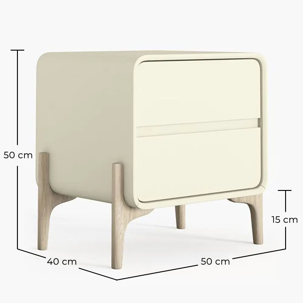 Wprowadź styl i funkcjonalność do swojej sypialni dzięki tej nowoczesnej skandynawskiej szafce nocnej. Wykonana z drewnianej ramy i pokryta wysokiej jakości ekoskórą, oferuje miękkie, współczesne wykończenie, które dostosowuje się do każdego otoczenia: sypialni dla dorosłych, nastolatków lub dzieci. Jej dwie przestronne szuflady ułatwiają utrzymanie porządku, a solidne drewniane nogi w naturalnym kolorze zapewniają stabilność i ciepły, organiczny akcent.