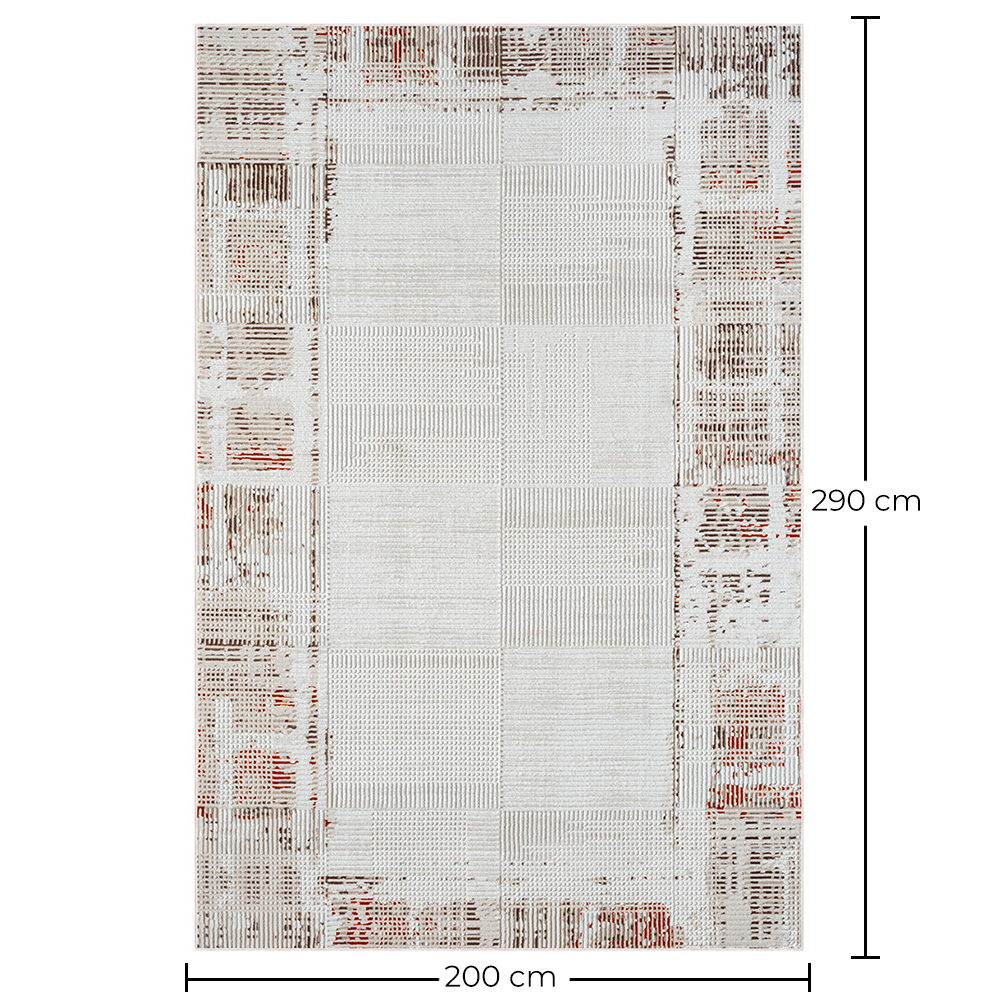 Ten piękny dywan jest wykonany z wysokiej jakości poliestru, nadając mu miękkość i luksusową fakturę pod stopami. Poliester znany jest z trwałości i odporności na plamy, co sprawia, że ten dywan jest idealny do obszarów o dużym natężeniu ruchu w domu. Dzięki swojemu bujnej kolorystyce i starannie zaprojektowanemu wzorowi ten dywan z poliestru nie tylko dodaje ciepła i komfortu każdemu pomieszczeniu, ale także dodaje elegancji i stylu do dekoracji Twojego domu.