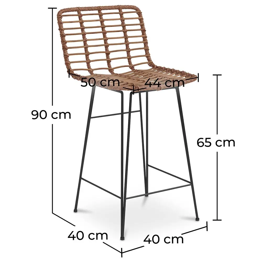 Jeśli szukasz prostego, ale stylowego stołka barowego, nie szukaj dalej niż ten stołek barowy boho. Wiklinowa rama stołka barowego ma cztery nogi rozchodzące się na zewnątrz dla optymalnej stabilności. Po obu stronach nóg znajduje się podnóżek zapewniający wytrzymałość i wygodę. Siedzisko wykonane jest z syntetycznego rattanu plecionego techniką wikliniarską. Ten stołek o wysokości 65 cm przekształci Twój bar kuchenny w miejsce, w którym zawsze chcesz być.