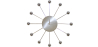 Ten pająkowy zegar ścienny składa się z dwunastu małych srebrnych kulek jak satelity krążące wokół dużego centralnego koła, do którego przymocowane są wskazówki tego zegara ściennego. Metal odzwierciedla światło. Nie tylko wskazuje czas, ale jest także autentycznym dekoracyjnym obiektem, który rozjaśni Twój salon, kuchnię lub sypialnię.