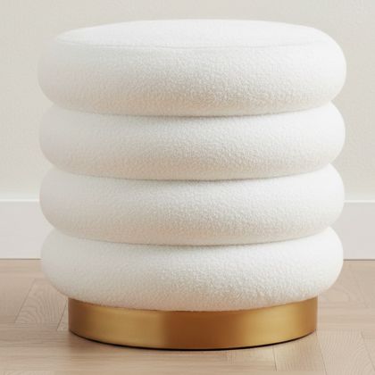 Okrągły Puf Tapicerowany Tkaniną Bouclé - Leonora