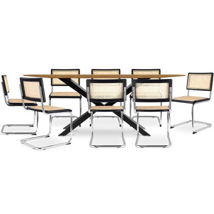 Pack Industrial Wooden Table (220cm) & 8 Rattan Mesh Chairs - Lia